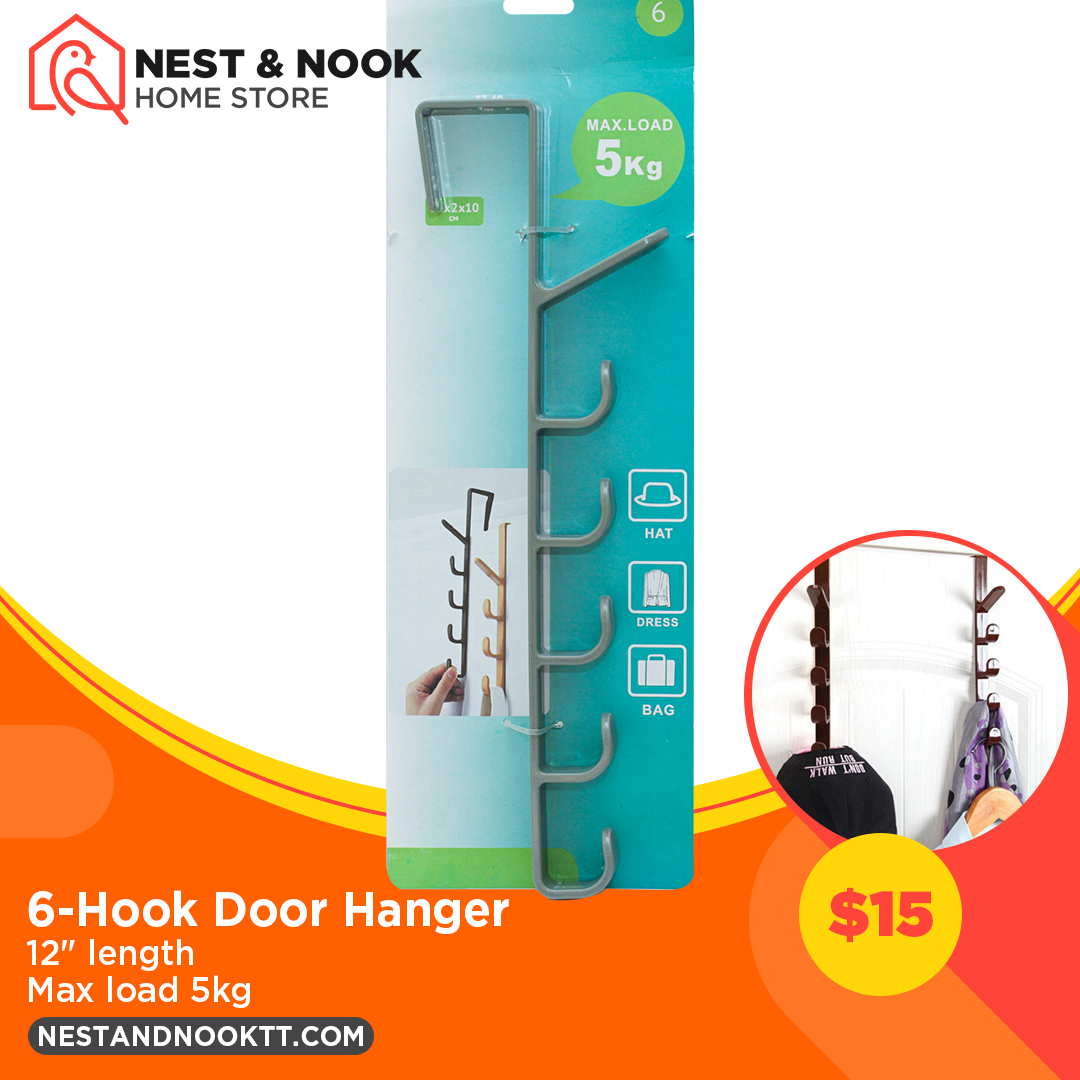 Make the most of your space and hang up to 5kg of items with our 6-Hook Door Hanger. It's easy to install and comes with everything you need for a neat and organized space. Get creative and store jewellery, bags, keys, or clothing in style.