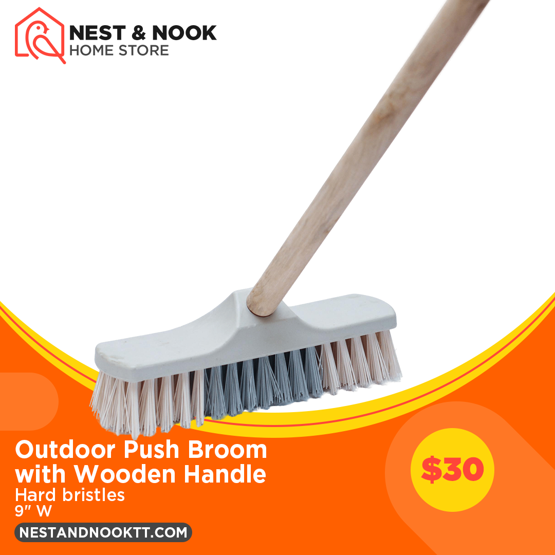 Outdoor Push Broom with Wooden Handle